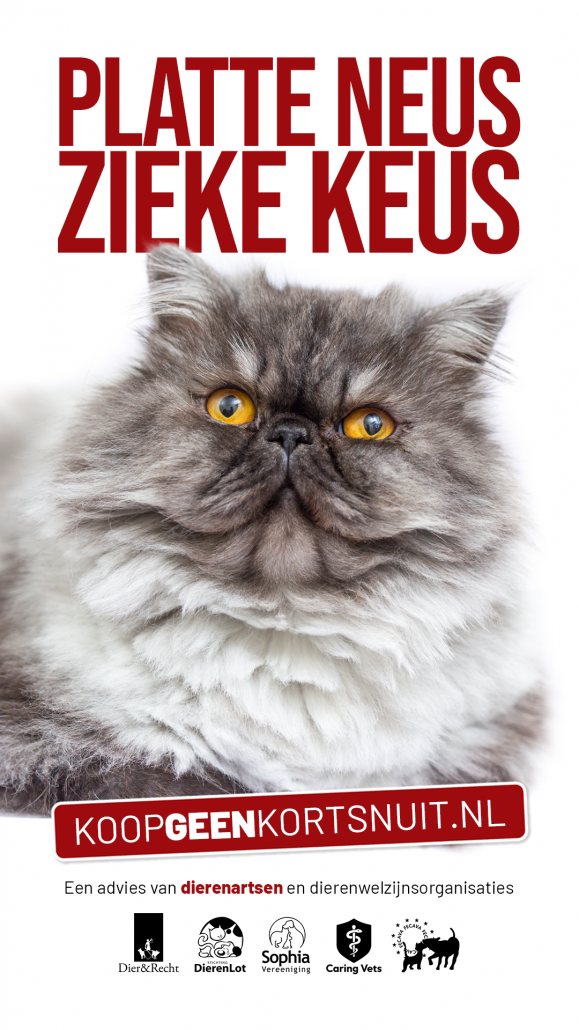 Omdat ook kortsnuitige katten ernstige gezondheidsproblemen ervaren, is in november 2023 het vervolg op Koop geen Kortsnuit gelanceerd. Dit keer heeft ook de Hondenbescherming zich aangesloten, evenals de Europese dierenartsenorganisatie FECAVA. Gezamenlijk hebben we een enorm bereik om mensen te informeren over het leed bij kortsnuitige honden en katten. Meer dan 70 organisaties in binnen- en buitenland ondersteunen de campagne.