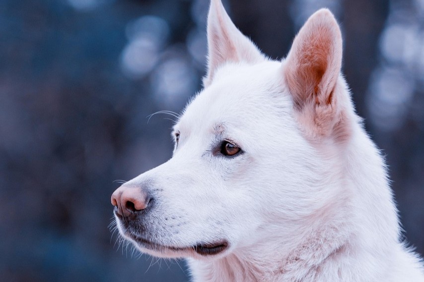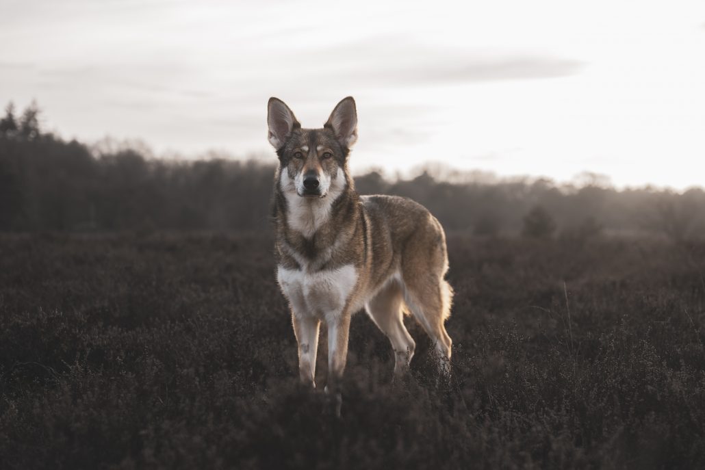 Bijvoorbeeld een herder of husky: de oren zijn iets naar voren gericht, soms iets afhangend.