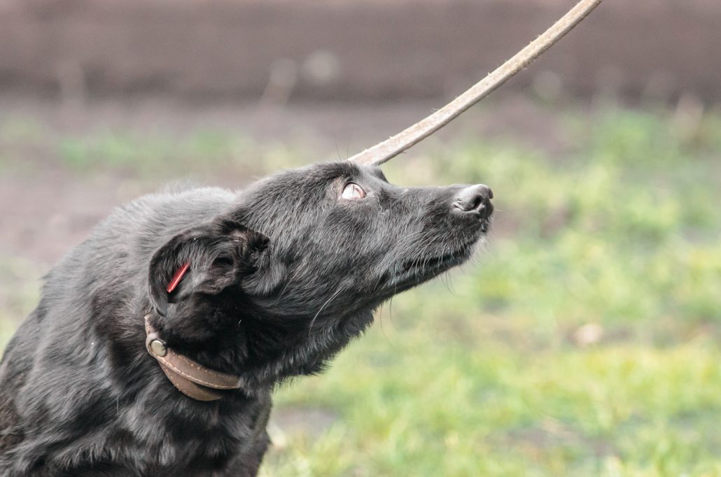 - Zie je een witte rand (‘whale eye’), dan is de hond erg onzeker. Het is belangrijk dat je de hond uit de stressvolle situatie haalt.