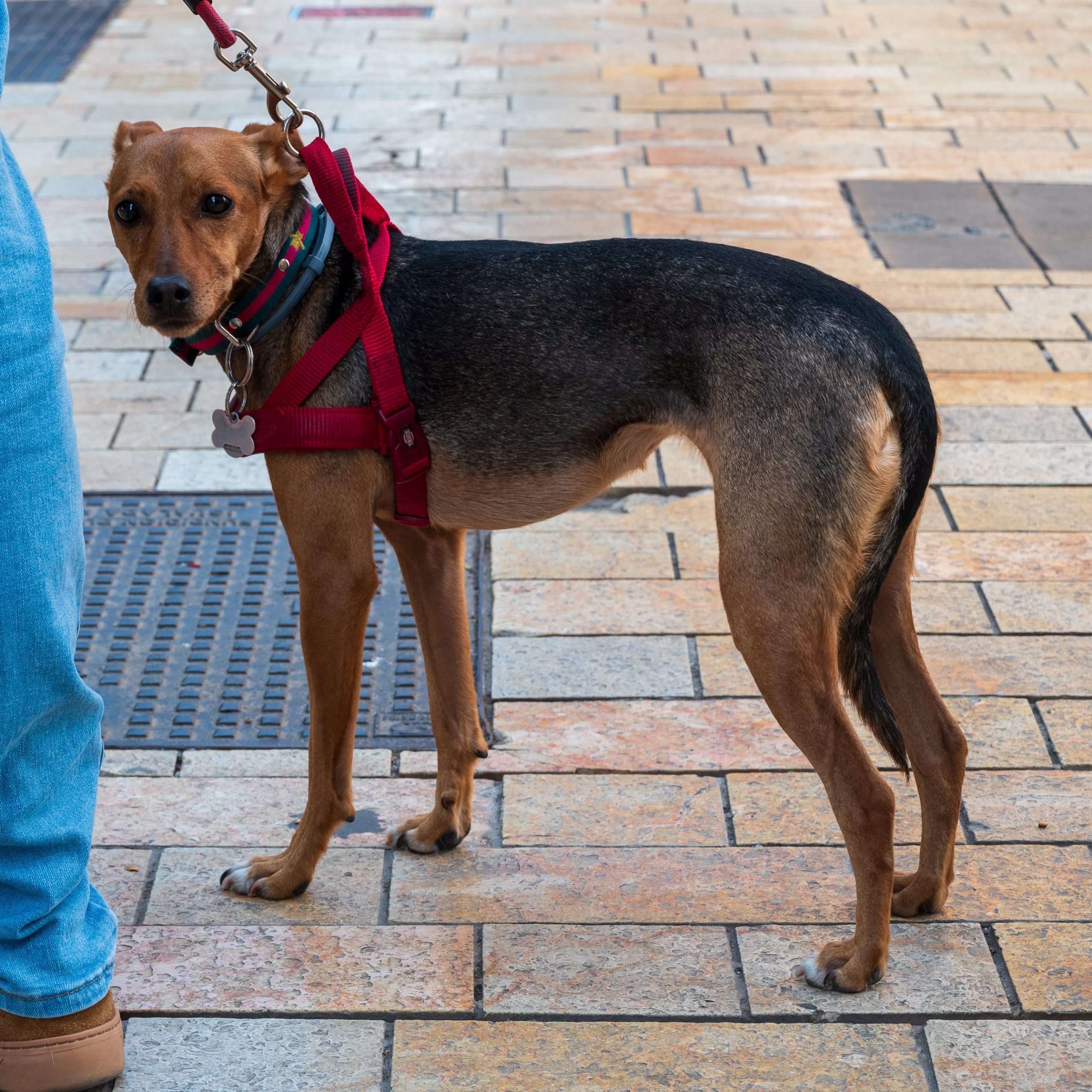 - Kijk een vreemde hond nooit direct in de ogen, maar kijk liever boven de ogen of naar de neus.