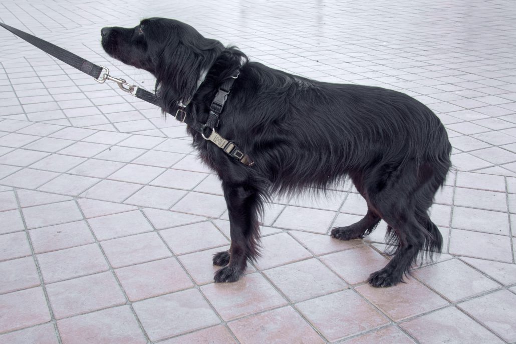 De hond is alert. Dit kan duiden op nieuwsgierigheid, maar ook op onzekerheid. Het is daarom belangrijk om naar de hele houding van de hond te kijken.