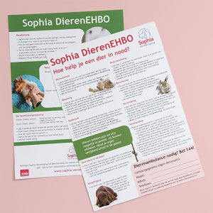 - De Sophia EHBO-kaart loodst je door de belangrijkste handelingen als je eerste hulp aan een dier moet geven. Want soms is de nood zo hoog dat je niet kan wachten tot een dierenarts ter plekke is.